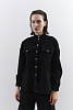 Описание Рубашка свободного покроя выполнена из микровельвета черного цвета. Воротник-стойка, спущенная линия плеча, длинный объемный рукав с манжетами на резинке, застежка на металлические кнопки по центру по планке спереди. Накладные карманы с клапанами на груди, фигурный низ изделия, декоративная отстрочка. В пару к рубашке можно подобрать брюки-карго макси из той же ткани. Рубашка в размере onesize подойдет на 42-48 размер по размерной сетке бренда.