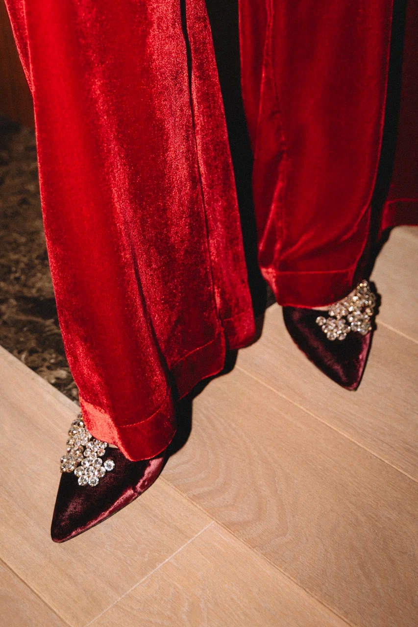 Брюки из шелкового бархата винные