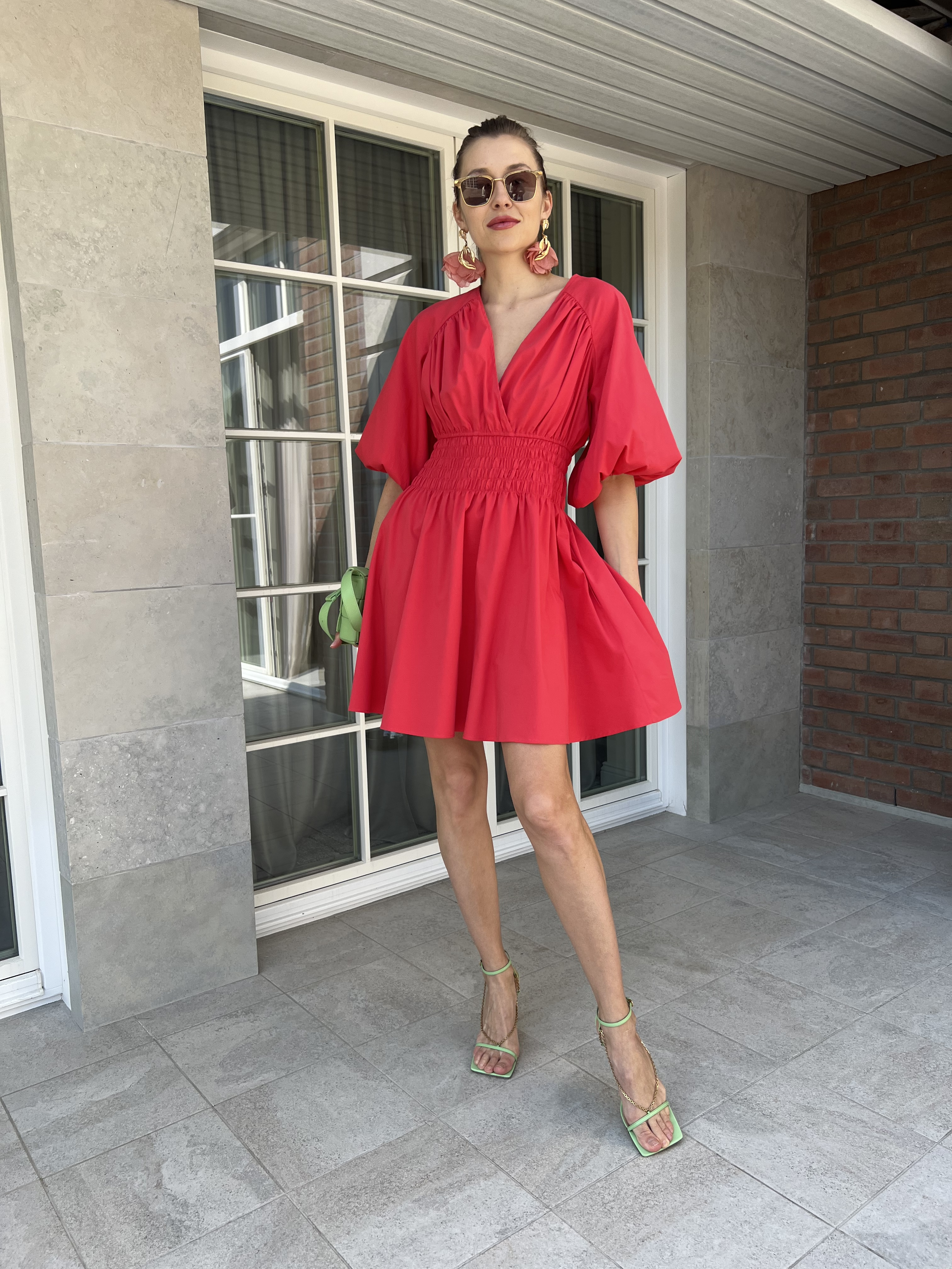 Платье-мини выполнено из хлопка, на талии широкая резинка, что позволяет платью идеально выглядеть как на размере S, так и на размере М, L. Пышный рукав фонарик, декольте на запах и вы уже чувствуете себя свободной, летящей и игривой. Платье создано для морских путешествий, но также гармонично впишется в городские будни.