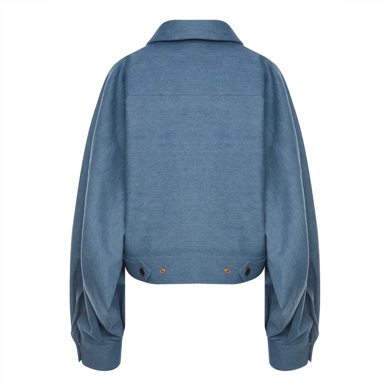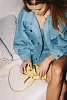 Бомбер из денима нежно голубого цвета, оверсайз, с накладными карманами, декорирован кнопками, на спинке хлястики. Сочетайте с юбкой из денима или с мини шортами из круизной коллекции.