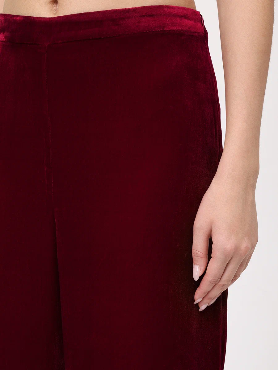Брюки из шелкового бархата винные
