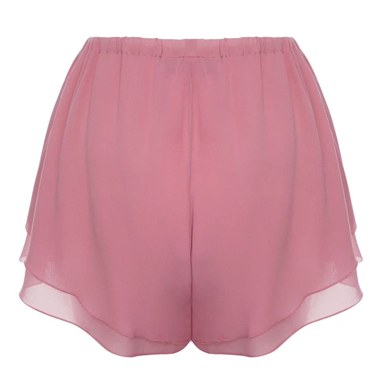 Шорты мини из шифона нежно розового цвета выполнены из двух слоев шелка. Удобная эластичная  резинка в поясе позволяет изделию «садится» на размеры S, M ( от: 68-73).