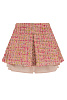 Юбка мини из твида розового цвета с вкраплениями из цветных ниток. Данная модель создана с намеренно выглядывающим подкладом, добавляя легкую небрежность столь нарядной ткани и сбивая градус нарядности. Юбку идеально носить как с жакетом/бомбером из розового твида коллекции бренда, так и простой базовой белой футболкой и кроссовками.