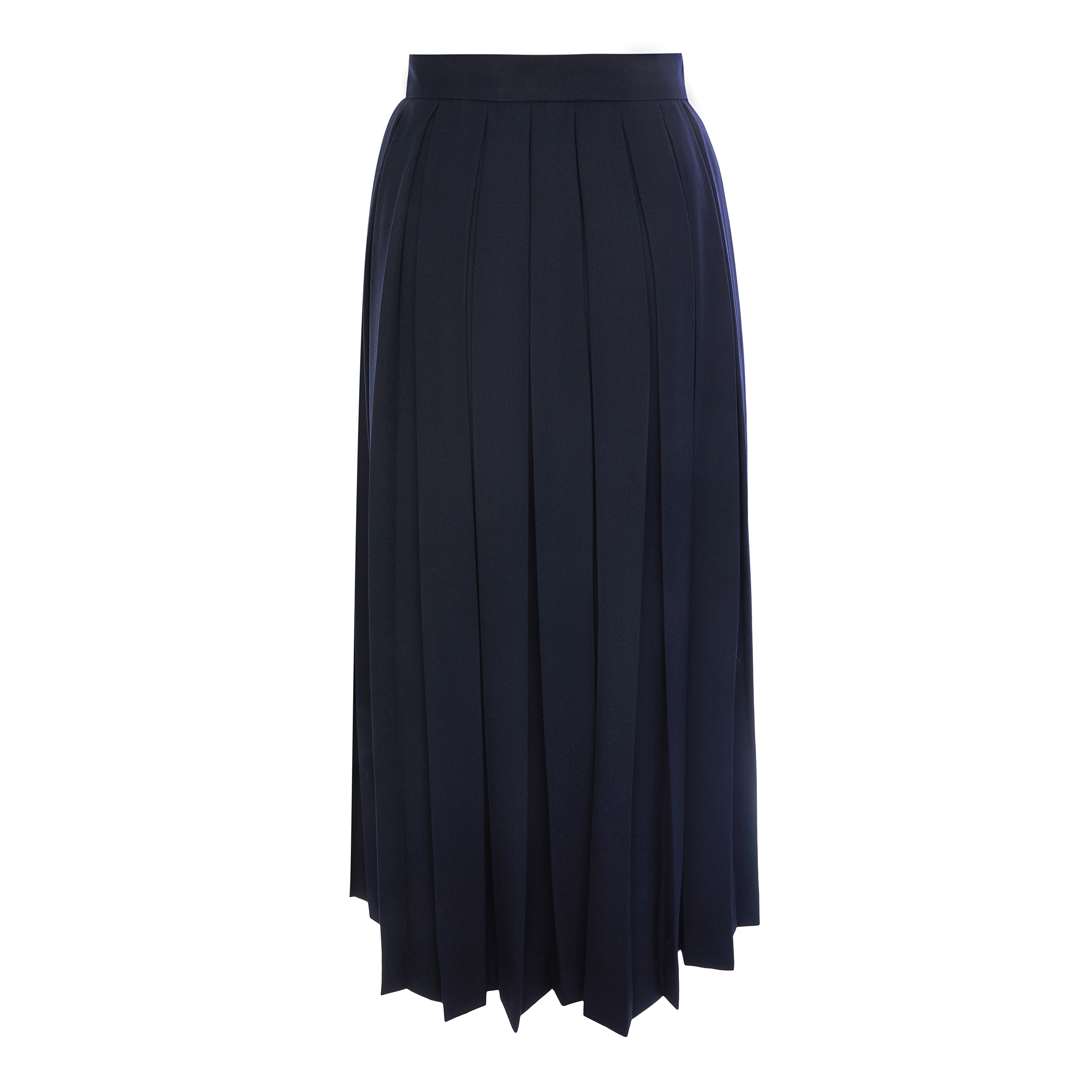 Юбка из премиальной шерсти длины миди выполнена из премиальной итальянской шерсти темно-синего цвета. Ткань заложена в складки и создает интересную фактуру и объем.