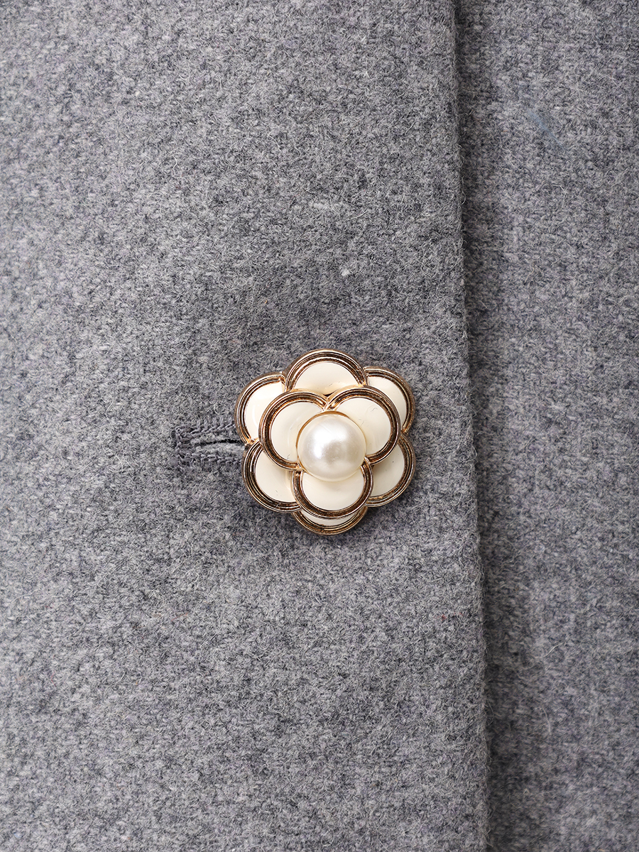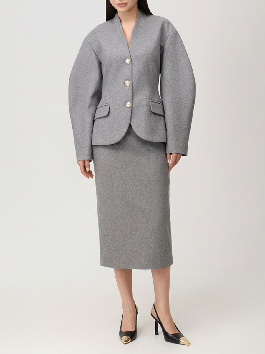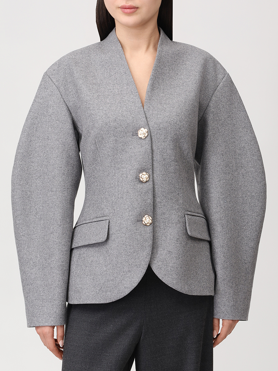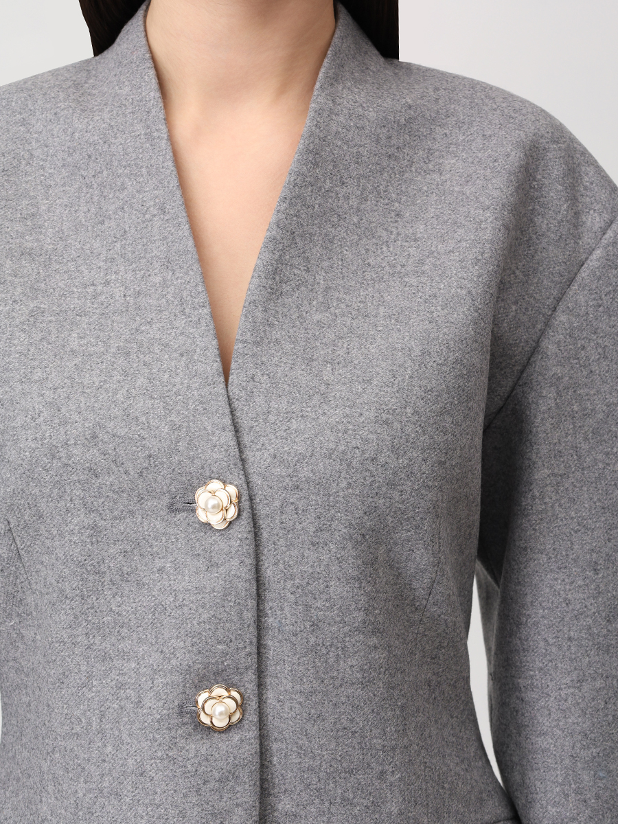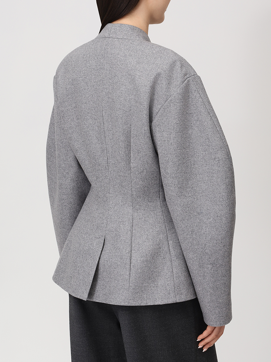 Жакет с круглыми плечами приталенный серый с декоративными пуговицами