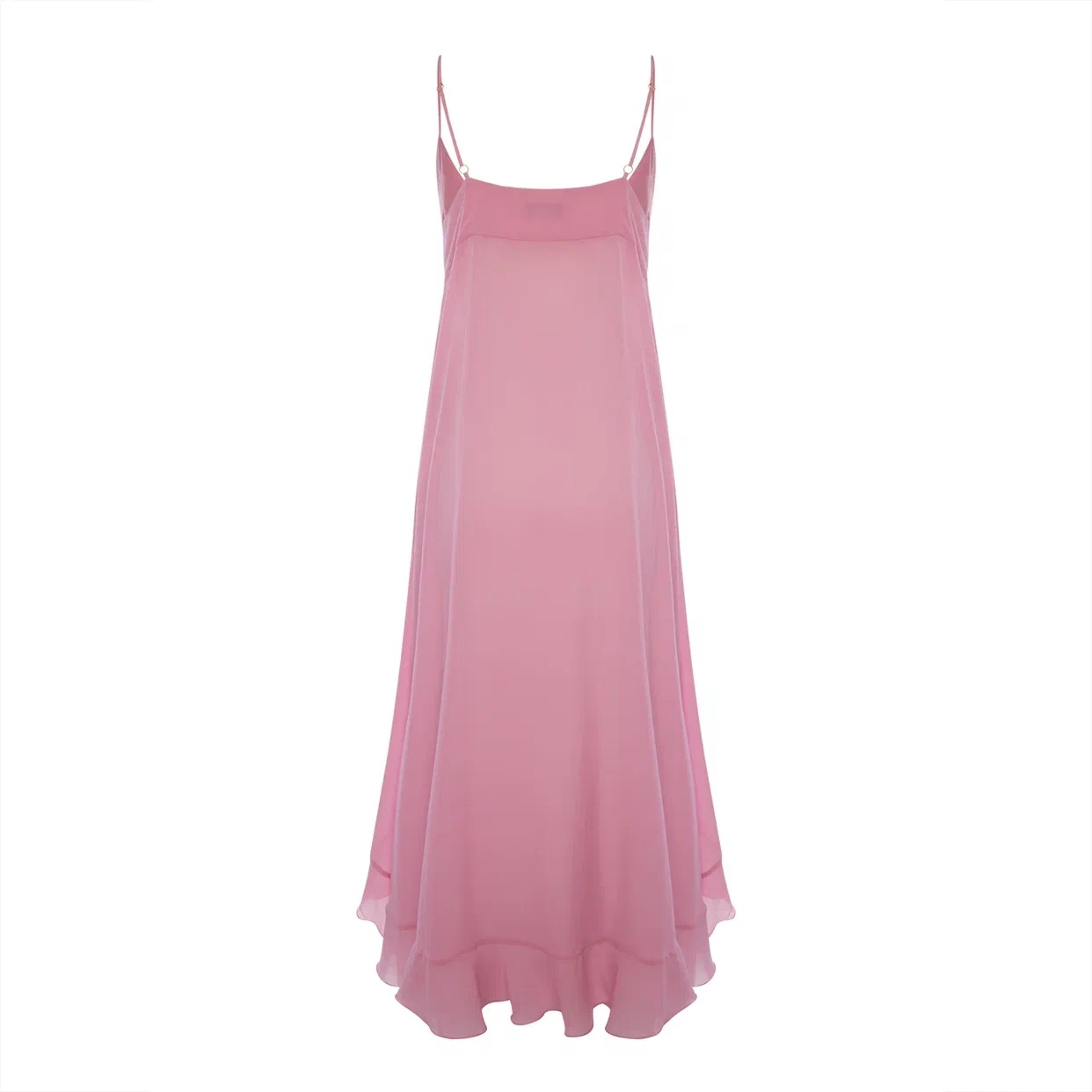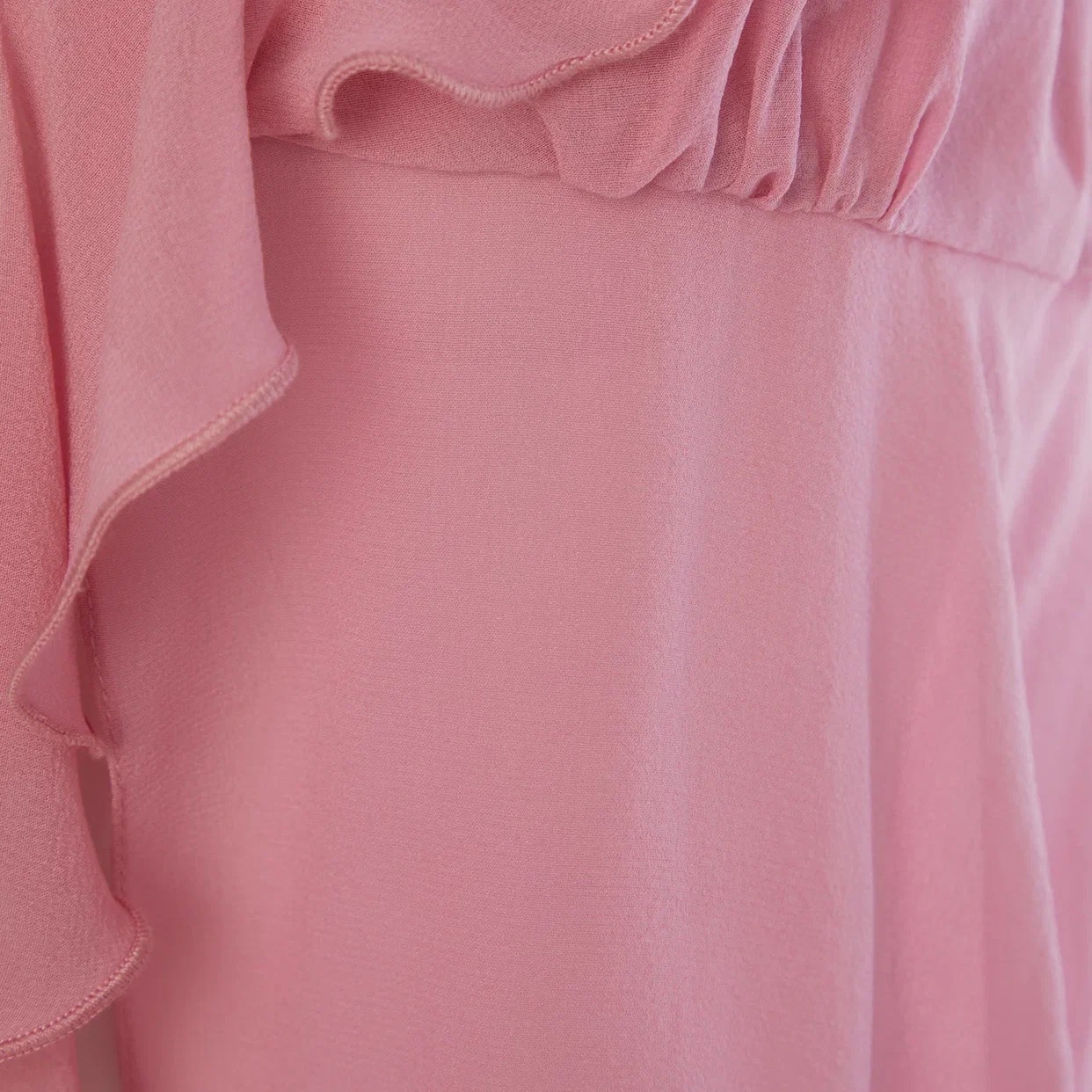 Шелковое полупрозрачное платье-накидка выполнена для круизной коллекции Pink bloom. Нежный розовый цвет тончайшего шифона, воланы и завязки создают правильный романтичный и женственный настрой. Носите эту накидку на купальник или с джинсами/мини джинсовыми шортами. Платье декорировано воланами по всей длине, а при ходьбе платье красиво струится, оставляя неизгладимое первое впечатление о вас, как о натуре утонченной и загадочной. Бретели регулируются на любой рост, размер чашки подойдет для размера S, M, завязки регулируются под обхват груди.